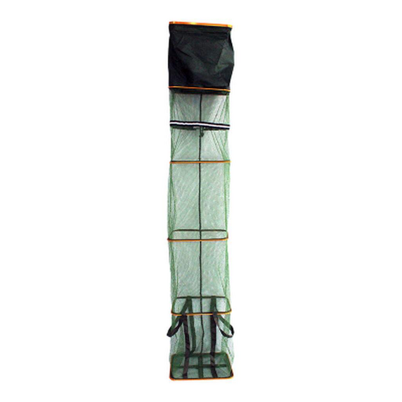 Представленная модель садка подойдет даже спортсменам на региональных соревнованиях. Ее глубина составляет 3 метра. Габариты - 46х34 см. Вес 1,5 кг. Садок Namazu SP 300х50см квадратный, что позволяет применять его в спокойных и проточных водоемах. Длина достаточна даже, если рыбалка происходит с отвесных берегов. Сетка изготовлена из прорезиненного нейлона, чтобы меньше травмировать рыбу. Для того, чтобы защитить материал от истирания, создатели пропустили его под квадратными рамами. Также эксперты Namazu оснастили модель колышком для крепления к земле. Садок состоит из 7 ярусов. Благодаря специальной утяжке, при транспортировке с уловом аксессуар можно сложить до размера одной секции.