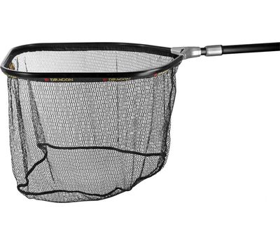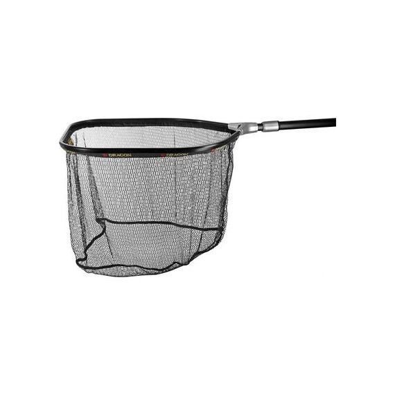 Пятиугольный подсак, двухсекционный (складная ручка), оснащенный защелкой (соединение обруча и ручки). Сетка очень прочная, мягкая и при этом быстросохнущая.