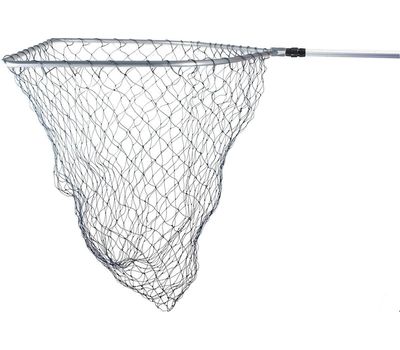 Подсак изготовленный для самых больших экземпляров, цельная обруч, сетка из прочного плетенного шнура, большие ячейки. Пятиугольная обруч, 70 x 70 см, длина 1,60 м.