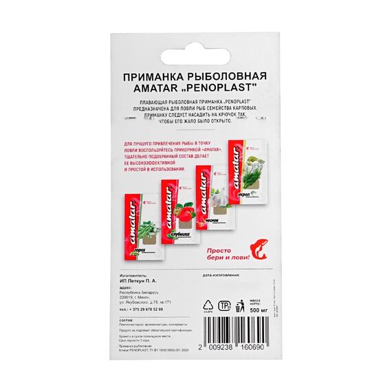 Пенопласт Amatar XXL — уникальный продукт для рыболовов, представляющий собой пенопластовые шарики с насыщенными ароматическими добавками. Предназначены для привлечения рыбы разных видов и повышения эффективности ловли. Благодаря специальной технологии изготовления, долго сохраняют запах и активно выделяют привлекающие вещества в воду. Приманку следует насадить на крючок так, чтобы его жало было открыто.