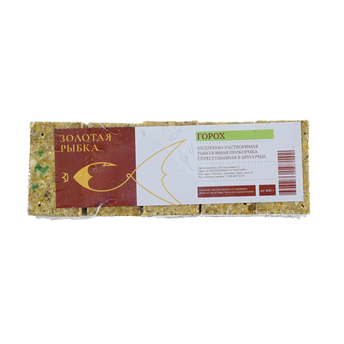 Прикормка Золотая Рыбка 180840 медленнорастворимая 420гр с Горохом, в кубиках