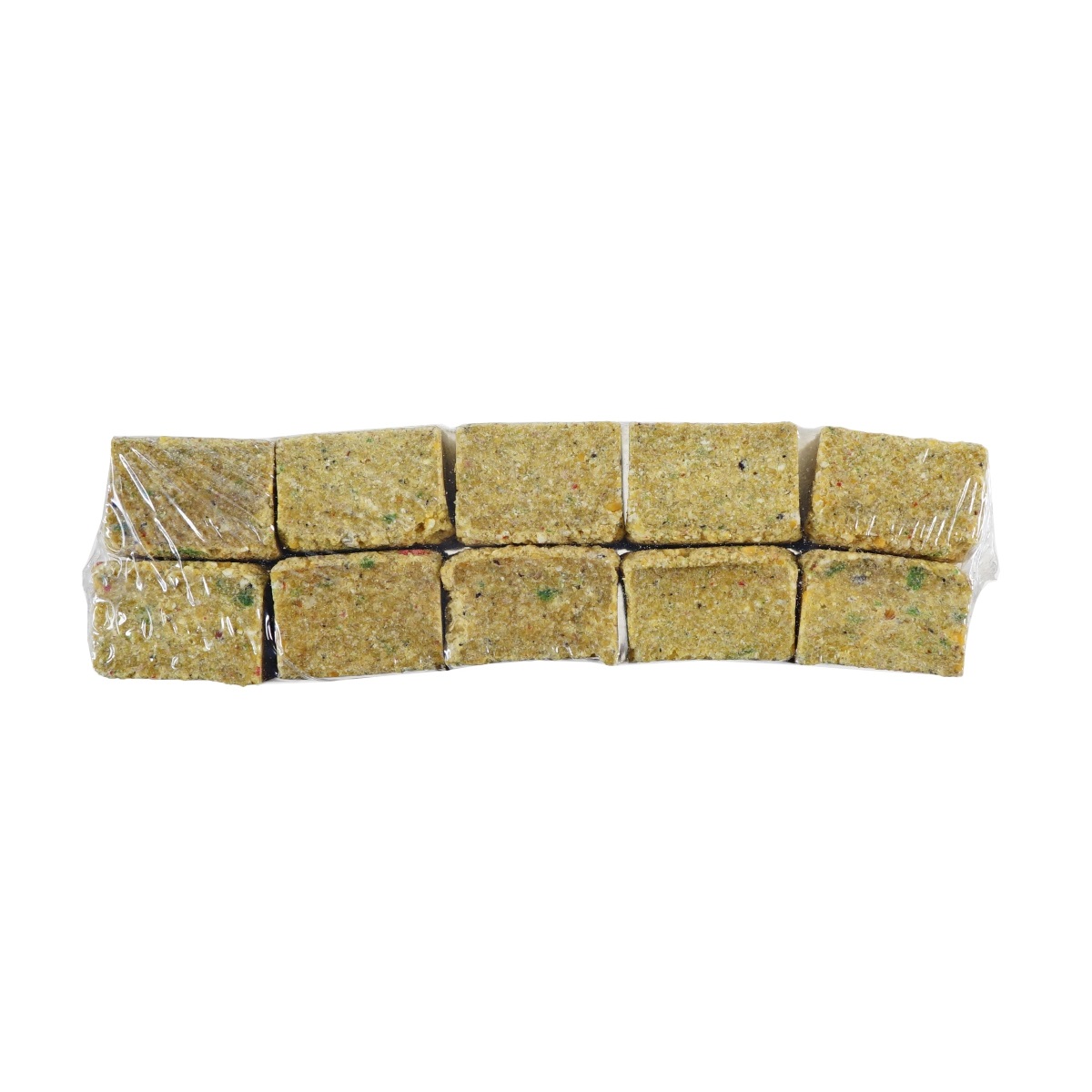 Медленно растворимая прикормка в кубиках (МРП) представляет из себя прессованную в кубики прикормку. Упакована по 10 кубиков в плотную пленку. Масса упаковки - 420 грамм. Цвет зависит от выбранного вкуса. Время растворения зависит от температуры воды, количества малька в водоеме, наличия и интенсивности течения и в среднем составляет от 2-х часов.