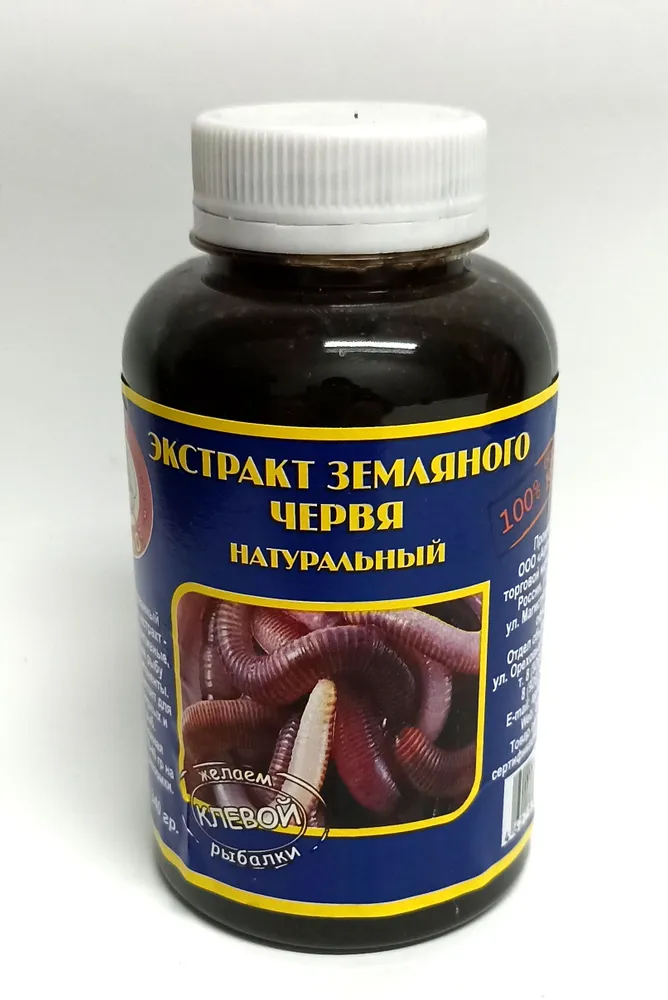 - Экстракт земляного червя - рыболовный ароматизатор, дип, ликвид изготовлен исключительно из натуральных компонентов. Основным компонентом является земляной червь.