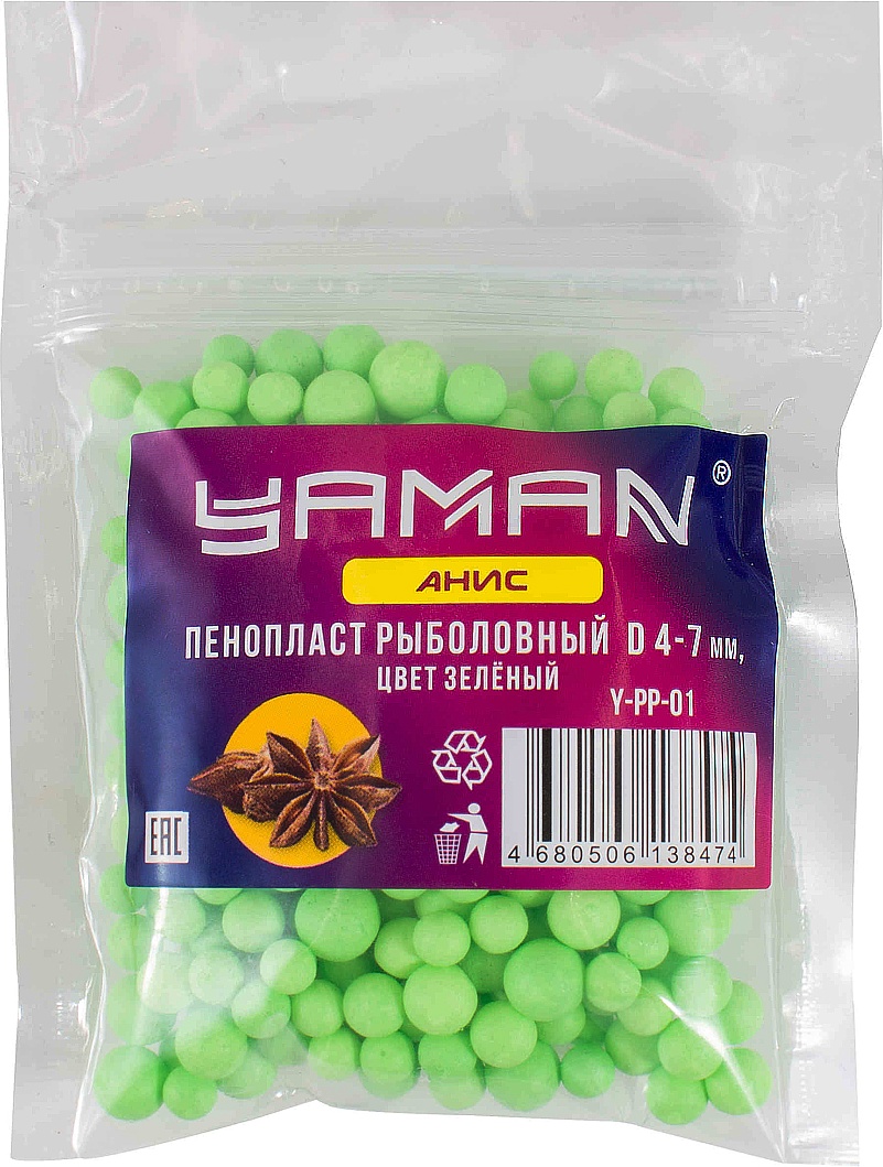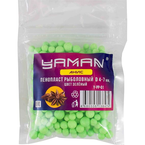 Пенопласт рыболовный Yaman Y-PP-01 Анис, d 4-7 мм, зелёный