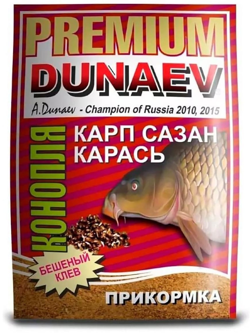 Прикормка Dunaev 4627138542552 Premium 1кг. Карп-Сазан Конопля Красная