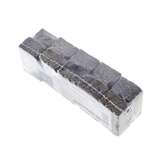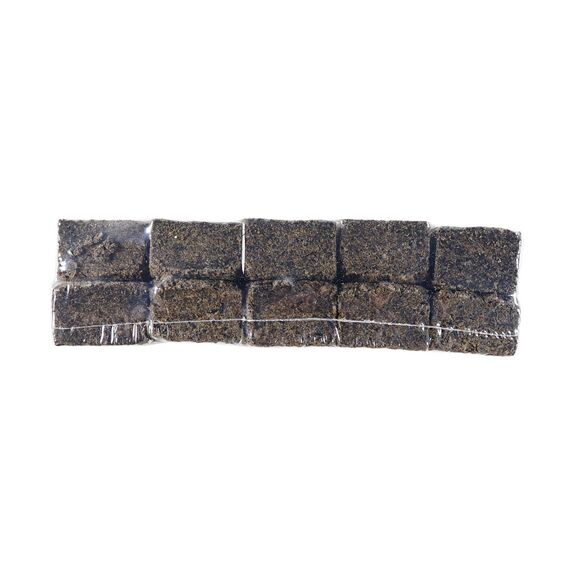 Представляет из себя прессованную в серого цвета кубики смесь из жмыха подсолнечника и дополнительных ингредиентов. Упакована в плотную пленку по 10 кубиков. Масса упаковки - 420 грамм. Имеется отверстие под крючок. Время растворения зависит от температуры воды, количества малька в водоеме, наличия и интенсивности течения и в среднем составляет от 3-х часов.