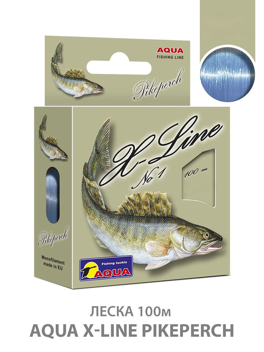 Леска AQUA X-Line Pikeperch (Судак) 0,18mm 100m, цвет - светло-голубой, test - 3,50kg