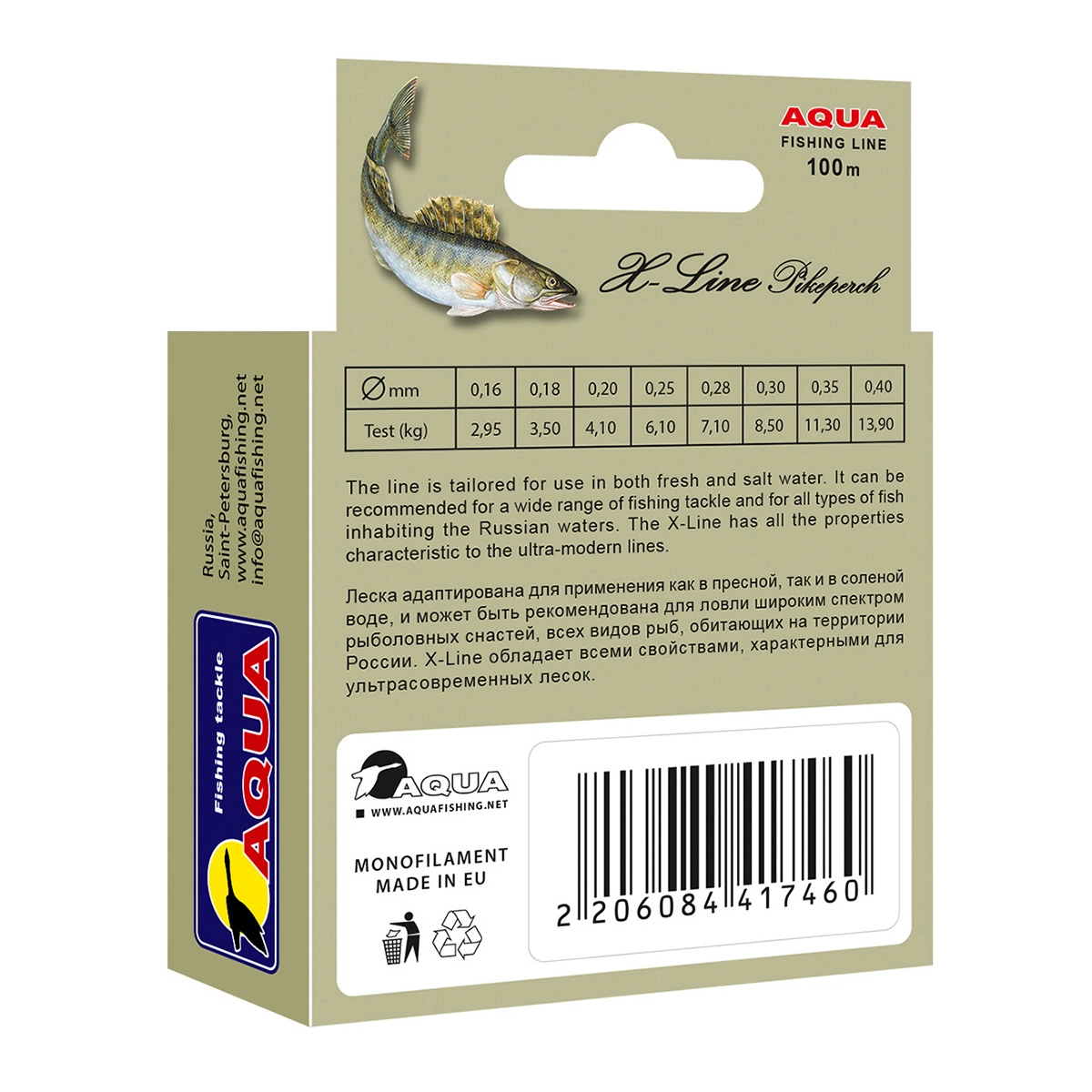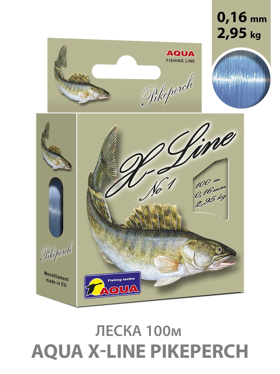Леска AQUA X-Line Pikeperch (Судак) 0,16mm 100m, цвет - светло-голубой, test - 2,95kg