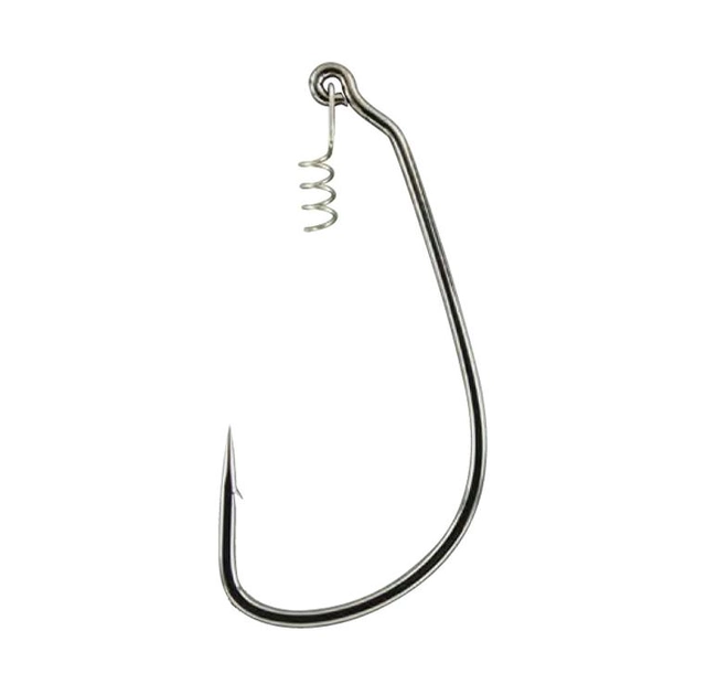 Крючок с металлической спиралью для надежного крепления мягких приманок.