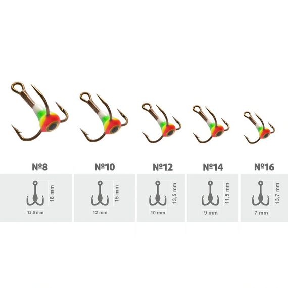 Тройник Helios TRMS-8-E-102P MUSTAD №8 3D глазок с эпоксидом 102P c фосфором