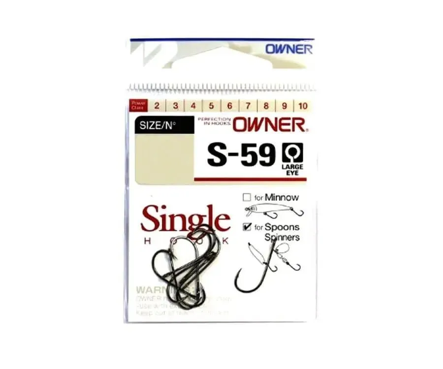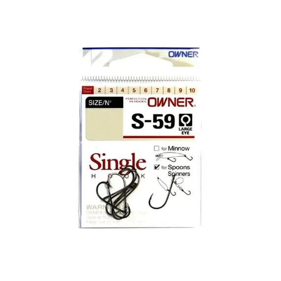 Серию крючков OWNER 51580 (S-59) рекомендуется использовать при оснащении блесен и различных типов воблеров, в том числе и минноу. Крючки характеризуются удлиненным цевьем, полукруглым загибом и удлиненным жалом. Главное их отличие от обычных одинарных крючков – это большое широкое ушко для крепления к приманке через заводное кольцо.
