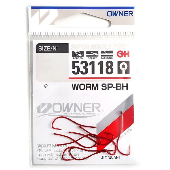 Крючки одинарные Owner Worm SP-BH bloody red 53118 №8 (7шт)