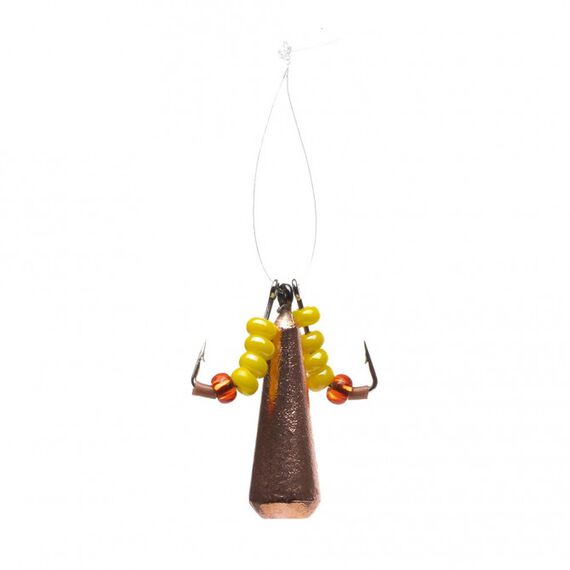 Приманка для зимней ловли. Имеет металлическое тело и 2 крючка. Особенности: • 2 крючка, свободно закрепленные на пластиковом хомуте; • Цветные подвижные бусы на крючках. Характеристики: Бренд: Helios Вес, гр.: 2 Длина тела, см.: 1,5 Вид ловли: зимняя Вид крючка: два крючка с бусинами Цвет: бронза