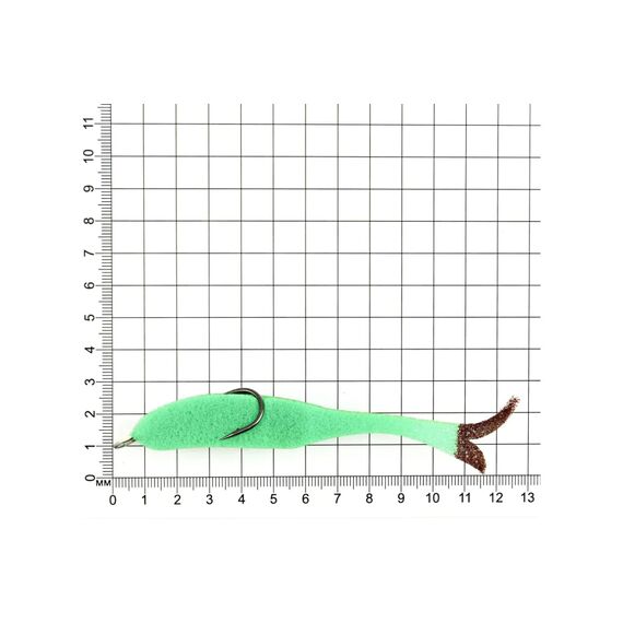 Приманка из поролона в воде играет нет только в вертикальной, но и в горизонтальной плоскости, что привлекает рыбу, а пропитавшись водой становится очень эластичной и реалистичной. Рыбки изготавливают по методу "резки". Для производства изделия используется высококачественный поролон повышенной плотности и жесткости, благодаря чему рыбка относительно устойчива к механическим повреждениям и, при этом, сохраняет игру свойственную только резанным, а не "плавленым" поролоновым рыболовным приманкам.