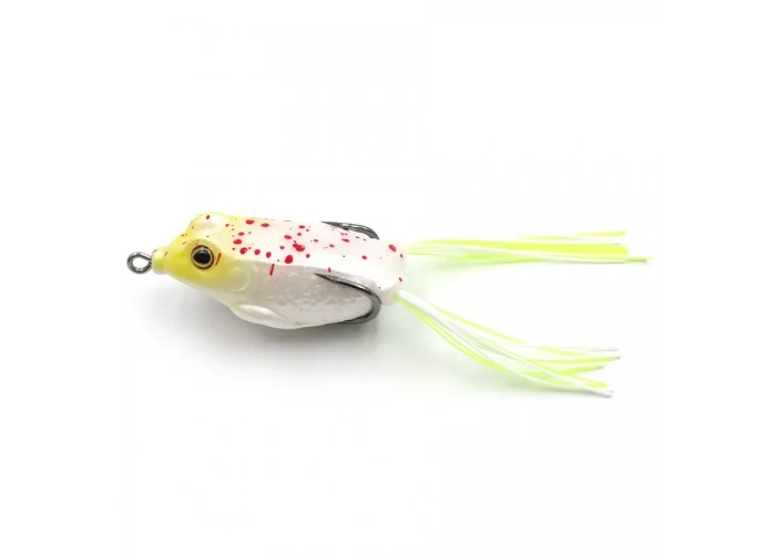 Лягушка - силиконовая приманка, полая внутри, как следствие имеет положительную плавучесть, и как могли догадаться, имитирует лягушку. Силикон достаточно мягкий, а двойник плотно прижат к телу приманки, тем самым получаем безупречную поверхностную приманку, которой не страшны самые заросшие участки на водоеме. А пучок силиконовых нитей с обеих сторон на поверхности воды в свою очередь имитирует лапки земноводного.