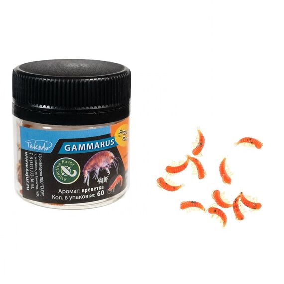 Искусственная насадка, выполненная в виде гаммаруса, гораздо долговечнее своего прототипа. Кроме того, она гораздо удобнее в монтаже. Выполнен мормыш Takedo из силикона с ароматическими свойствами. Как известно, мирная рыба в поиске еды ориентируется прежде всего на запах. Поэтому естественный аромат может стать решающим преимуществом для рыболова. В качестве эксперимента с уловистостью можно использовать дополнительно дипы и аттрактанты.