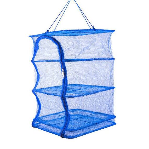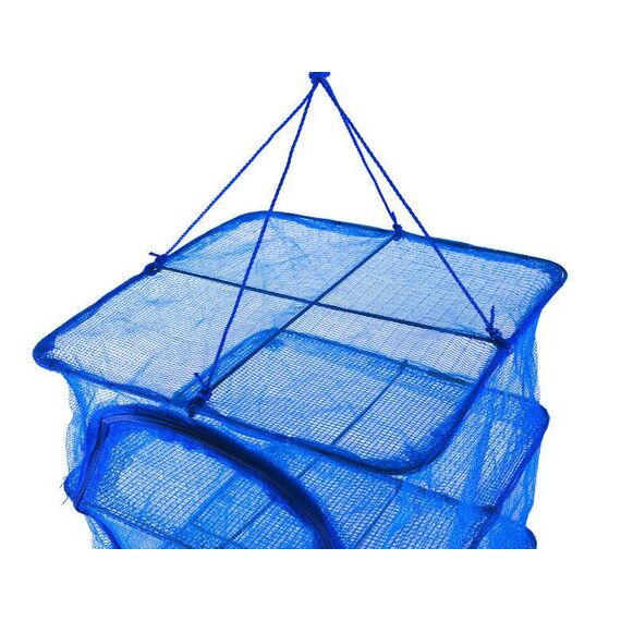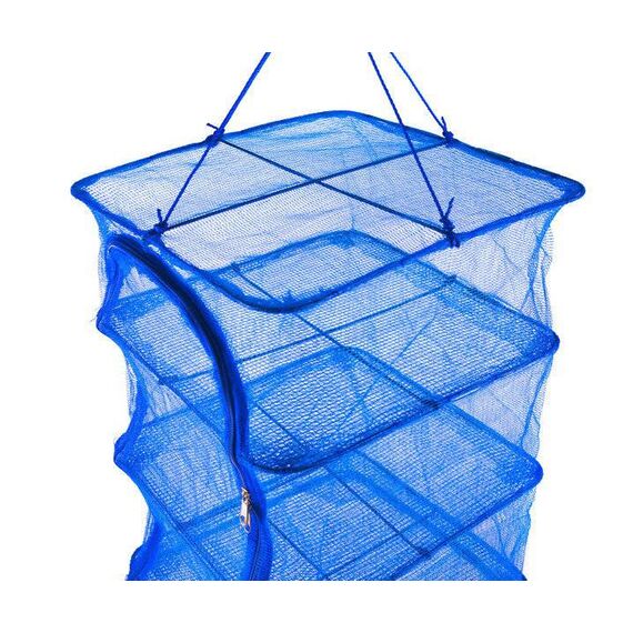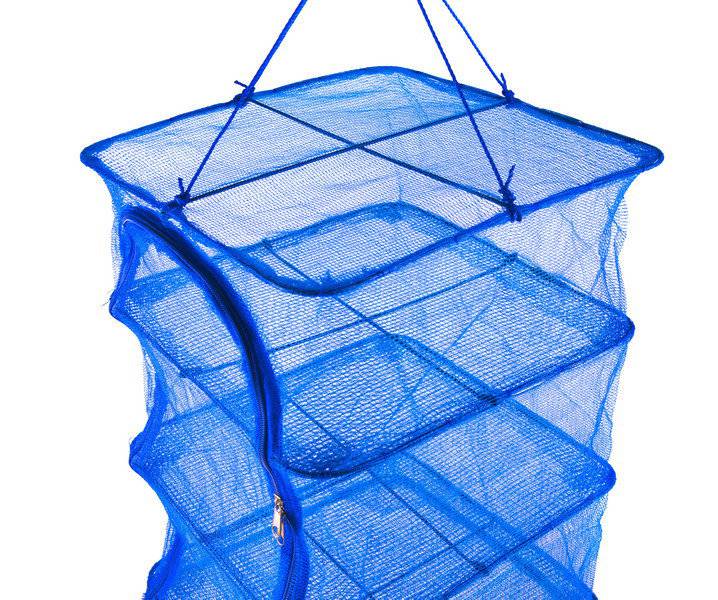 Подвесная сушилка для рыбы может использоваться также для сушки грибов, хранения продуктов на свежем воздухе. Москитная сетка защитит содержимое от назойливых мух. Три полки размером 40х40х19 см. позволят разместить большое количество рыбы.