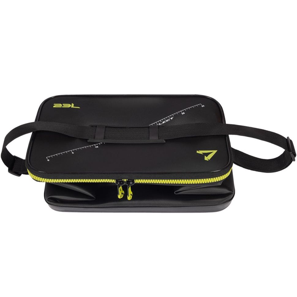 -Верхняя крышка: Закрывается мощной молнией увеличенного размера; оснащена мерной шкалой для определения длины поводков или пойманной рыбы.