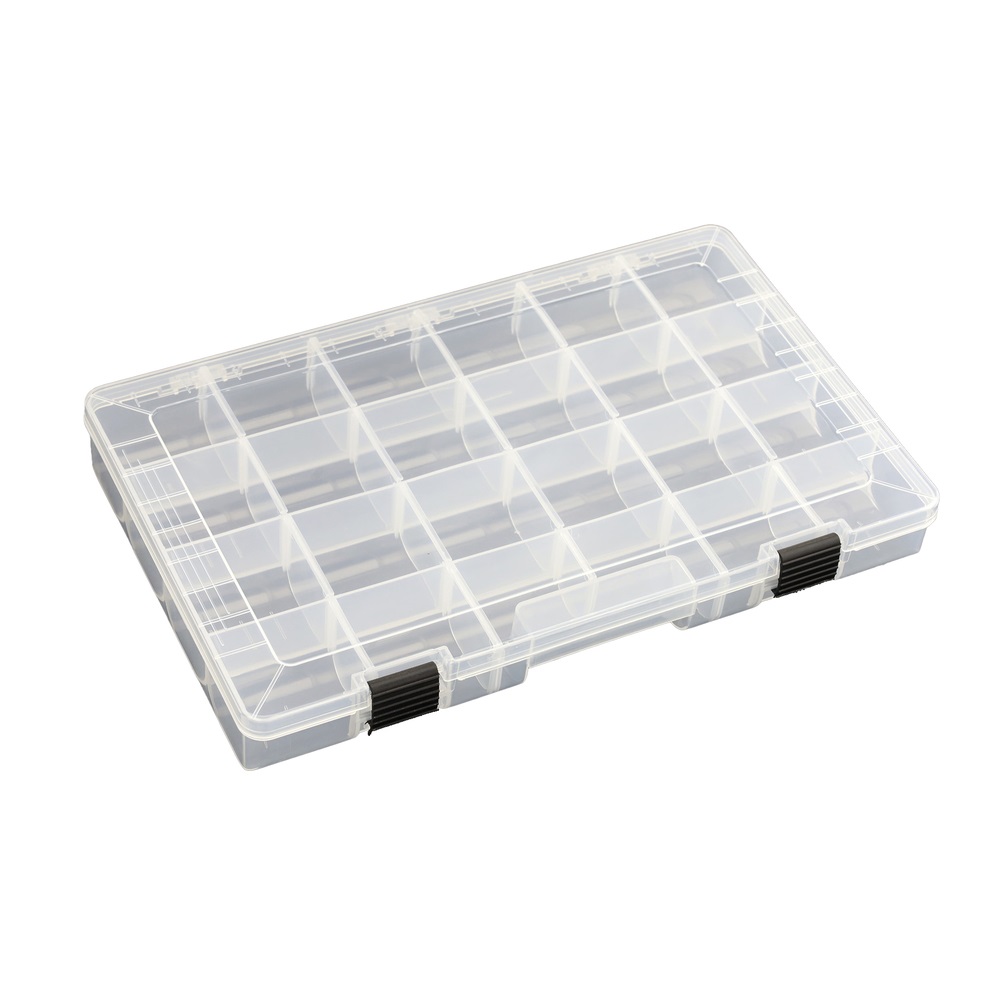 Размеры коробки для приманок AquaticBox 350 составляют 35 х 23 х 4,5 см. Изготовлена из очень прозрачного пластика. Рыболовная коробка оснащена двумя прочными защелками с практичным запорным механизмом, что обеспечивает легкое открытие и закрытие, при этом сводит возможность самопроизвольного открытия к нулю. В комплект входят 20 перегородок, для организации ячеек необходимого размера. С торца коробки имеется углубление для удобства переноски и изъятия коробки из сумки или рюкзака. Стандартный размер ячейки: 5,5 х 5 х 4 см