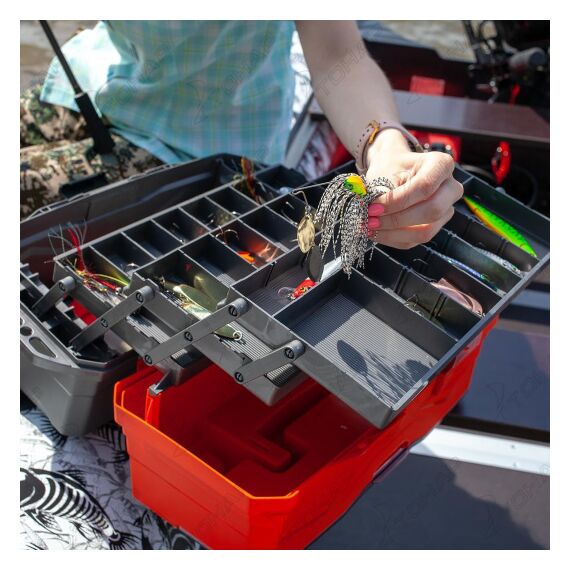 Прочный и надежный ящик NISUS для рыболовных приманок и снастей, который позволит компактно их хранить и переносить. Три выдвижные полки с отсеками разных размеров позволят аккуратно разместить катушки, лески, приманки, крючки и прочее рыболовное снаряжение. На крышке ящика имеются отделы, которые закрываются прозрачной крышкой. Ящик оснащен удобной ручкой для его транспортировки.