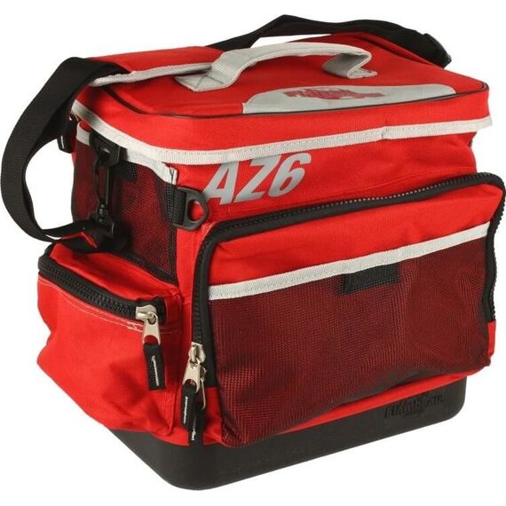 По бокам сумки вшиты еще три кармана для всевозможной оснастки. На фронтальной части имеется сеточное отделение на резинке, где хорошо разместить самые необходимые вещи. Сумка рыболовная Flambeau с коробками AZ6 Large Tackle System прочна, красива и удобная для переноски, благодаря регулируемому ремню и мягкой лямке.
