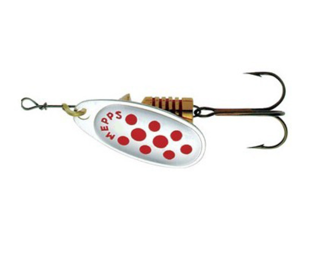 Блесна MEPPS R16318 COMET (silver red dots)(№ 5)(11г)(вращающаяся)