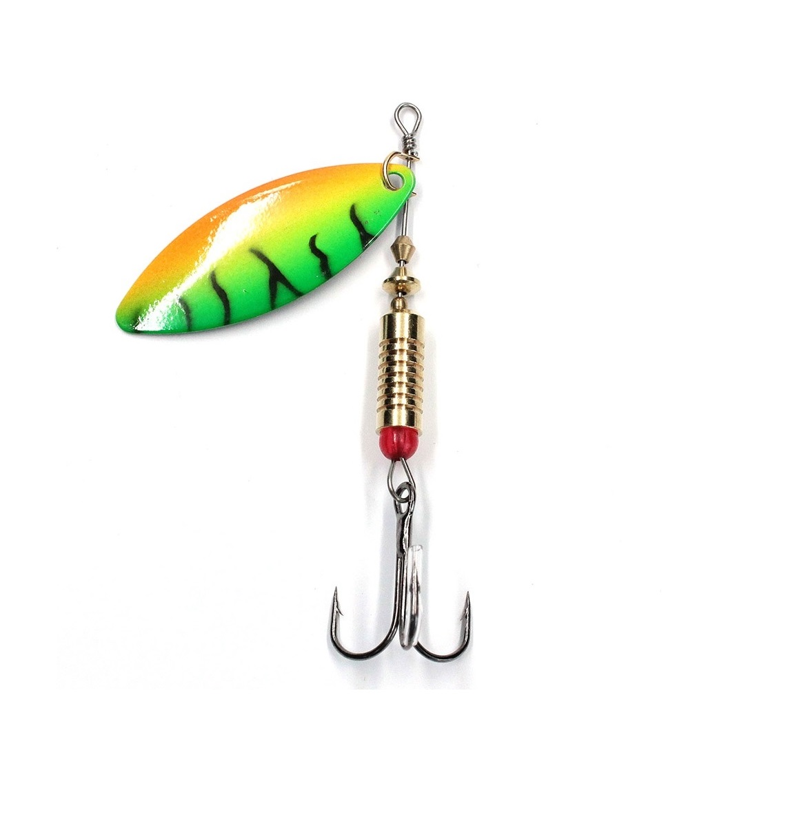 Модель представленной вращающейся блесны разработана экспертами бренда Намазу для облавливания обширных проточных акваторий. Весит Alleria 14гр, имеет вытянутый, зауженный на концах лепесток и длинный, цилиндрический сердечник. Конструкция приманки облегчает выполнение дальних забросов, чтобы подобраться к осторожному хищнику. Модель подойдет для охоты за крупными лососевыми, щукой или горбачом-окунем. Лепесток без сбоев вращается при наличии течения, создавая мощные гидроакустические вибрации. Шумовая проточка имеется и на сердечнике. В нижней части этой детали у Namazu Alleria 14гр есть яркая алая бусина, которая может служить дополнительной точкой атаки.