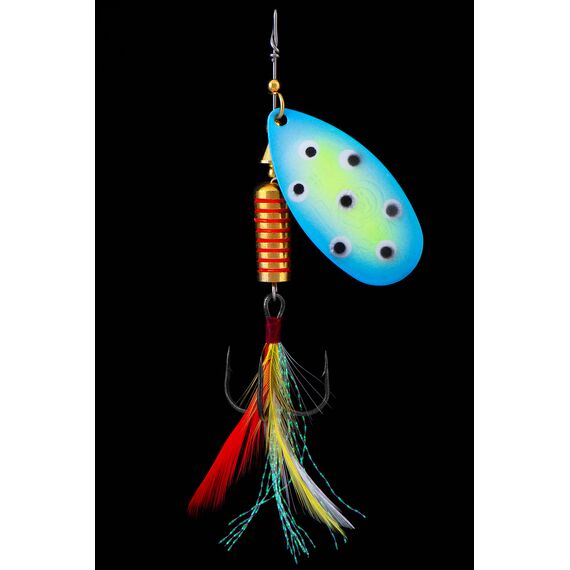 Всю игру блесны можно изменять скоростью проводки - чем выше скорость проводки, тем выше скорость вращения лепестка, и наоборот