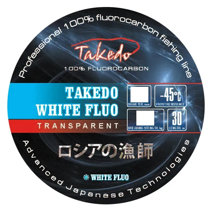 Леска зимняя флюорокарбон TAKEDO White Fluo - высококачественная флюорокарбоновая леска произведена из 100% флюорокарбона по японской технологии. Идеальный вариант для изготовления поводков, ловли на мормышки, вертикальные блесны и балансиры для ловли хищника.