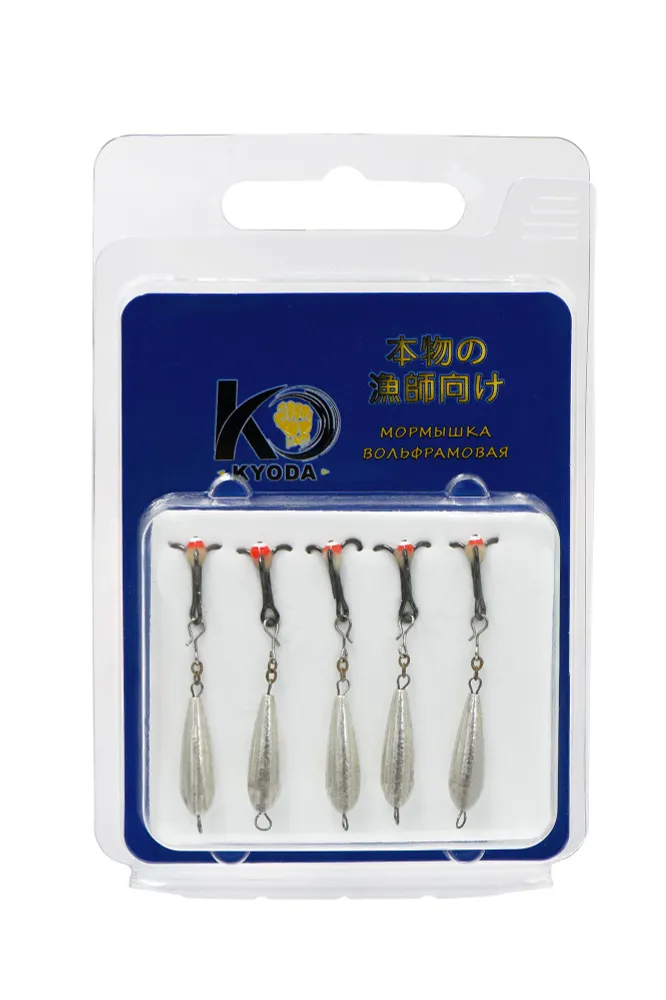 Мормышка вольфрамовая Kyoda W54-M Ag Черт с подвесным тройником, размер M, вес 1.3 гр, серебро