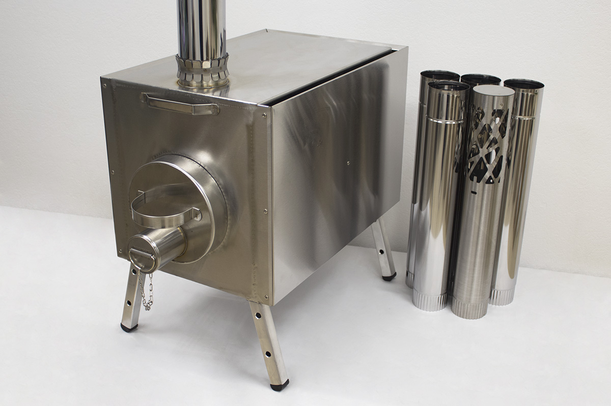 - Стационарные экраны приварены к печи и не регулируются. Они увеличивают жесткость конструкции, упрощают процесс сборки и выполняют защитную функцию. Печь со стационарными экранами подойдет для отопления палатки в любое время года, а также для приготовления и разогрева пищи.