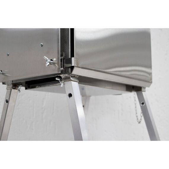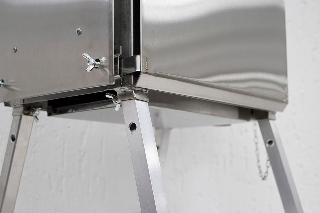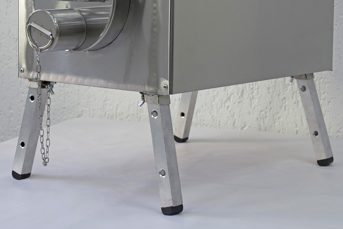 Съемные алюминиевые ножки имеют достаточную высоту и устойчивость, чтобы обеспечить необходимую пожарную безопасность при использовании печи, а также упрощают транспортировку. Крепятся при помощи барашковых винтов.