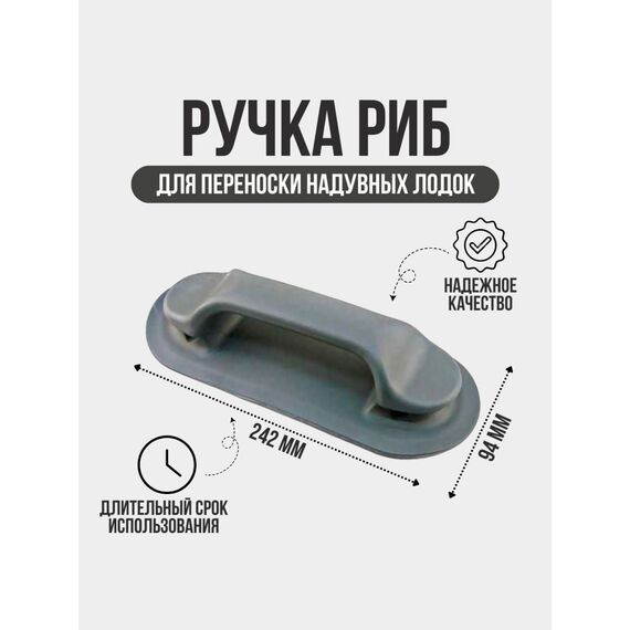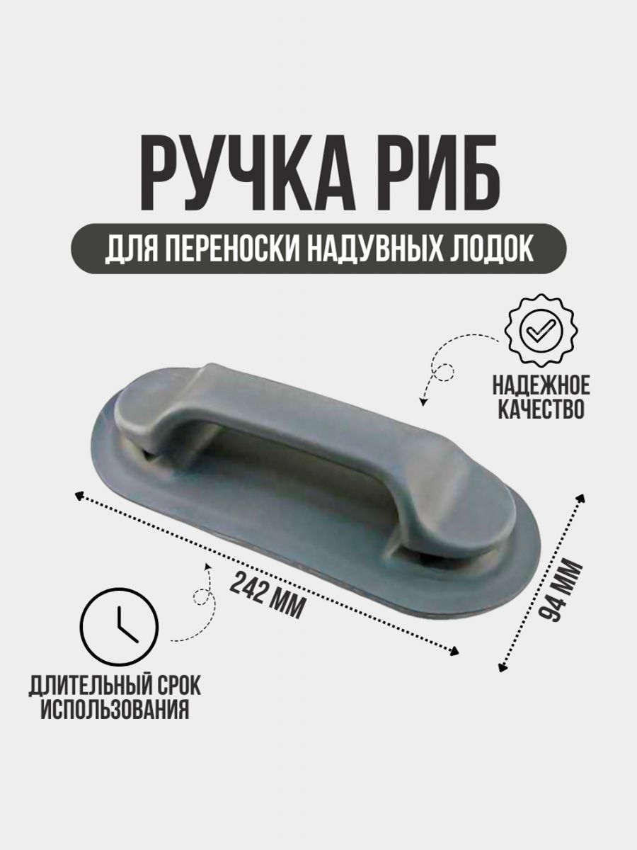 Используется для переноски надувных лодок. Также дополнительно устанавливается в подходящие места внутри лодки, чтобы была возможность держаться во время плавания. Крепится на клей ПВХ. Размеры 94х242 мм, цвет серый, материал ПВХ.