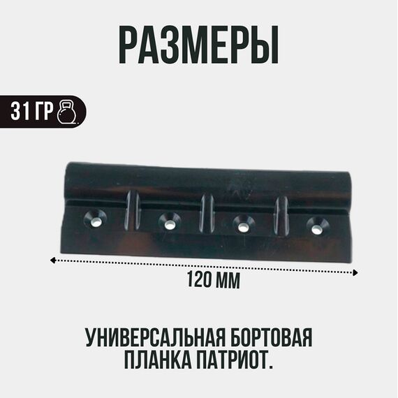 Универсальная бортовая планка Патриот предназначена для закрепления передвижного сиденья и различных аксессуаров на лодках, имеющих ликтрос. В конструкции предусмотрено 4 крепежных отверстия для саморезов.