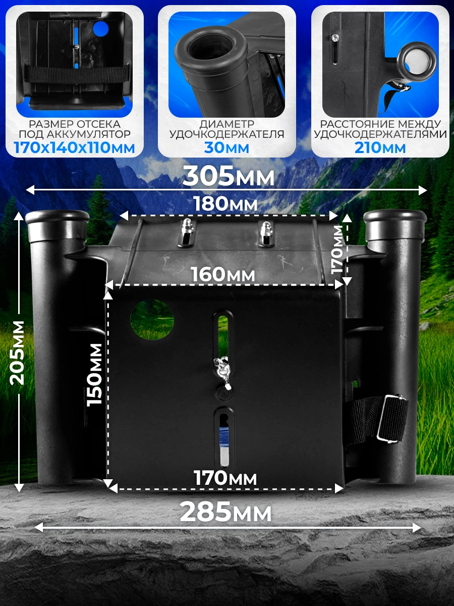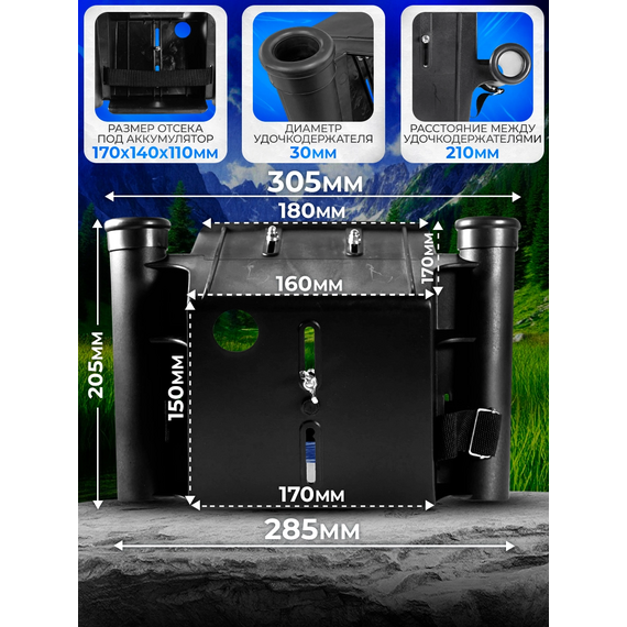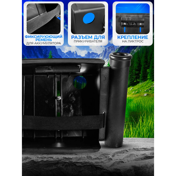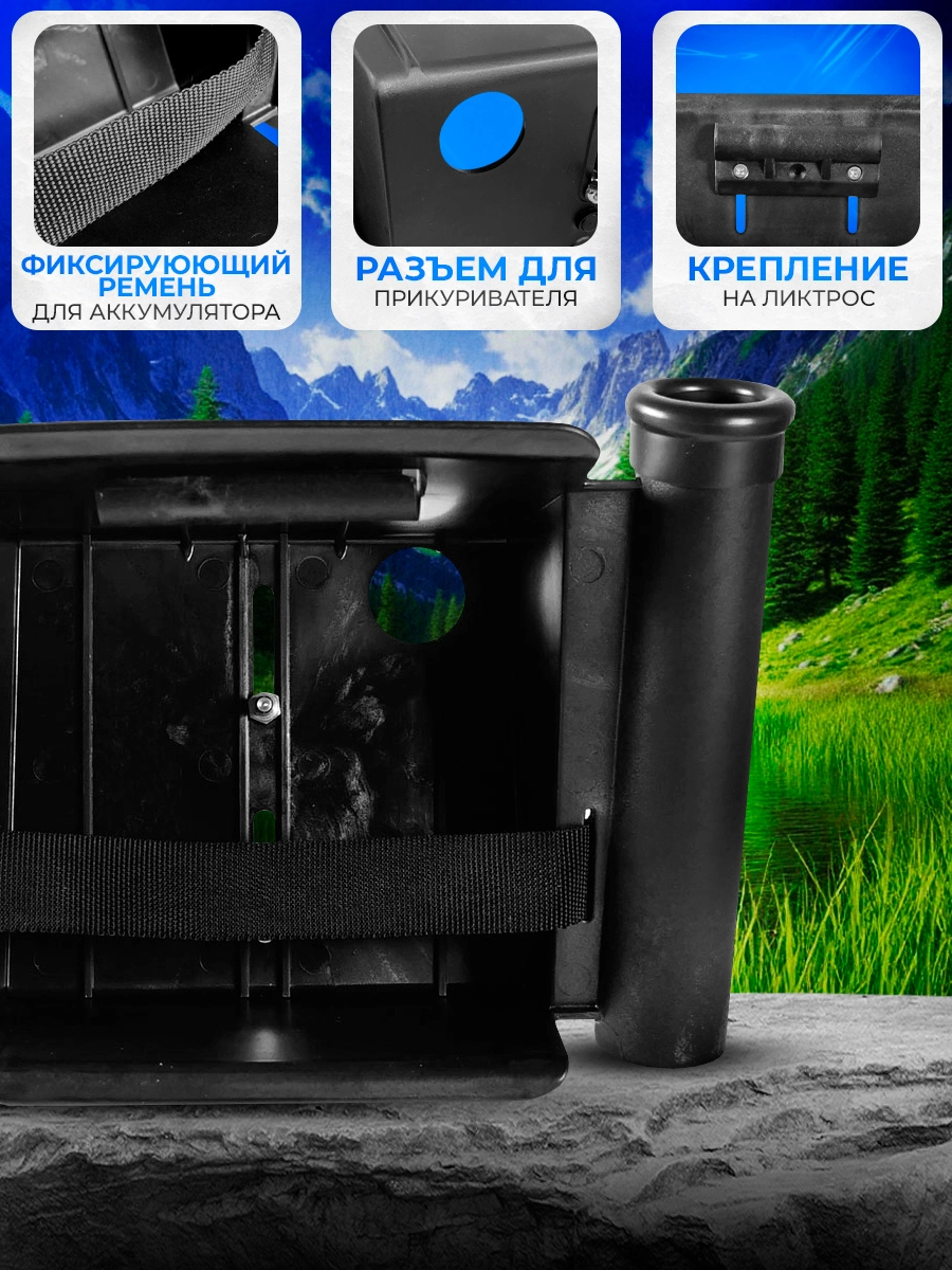 Подставка под эхолот с аккумулятором из ударопрочного пластика с креплением на ликтрос.