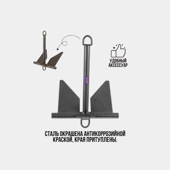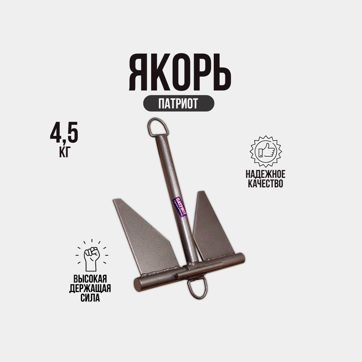 Якорь от компании Патриот - удобный аксессуар, который пригодится любителям рыбалки с лодки. Якорь имеет два металлических кольца для удобства фиксирования веревкой.