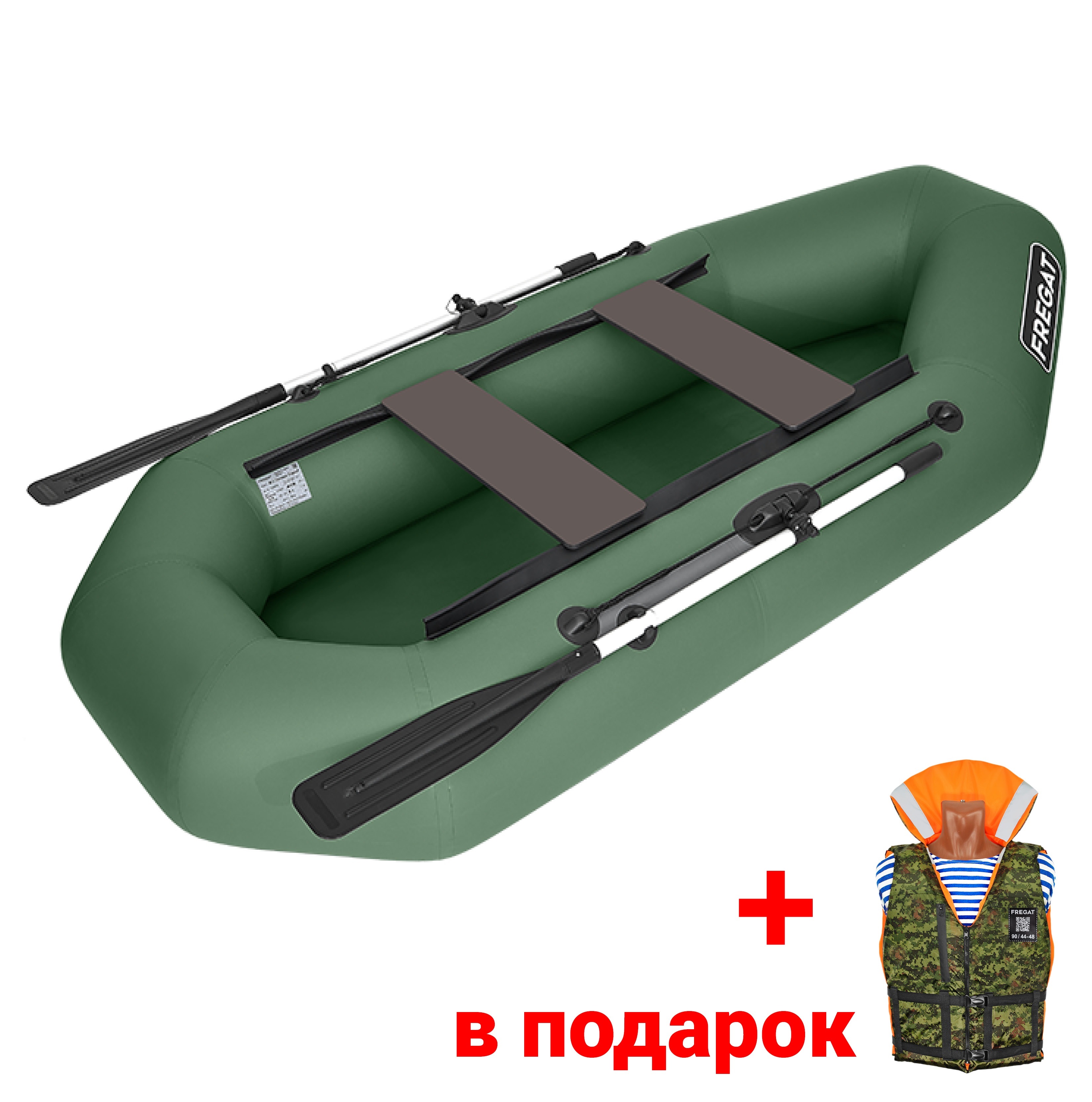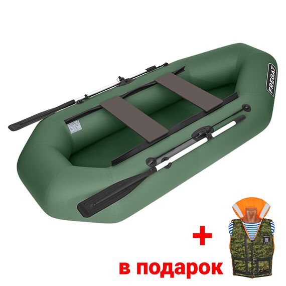 Лодка надувная ПВХ Фрегат М-2 Оптима (260см) зеленая + жилет Фрегат Лайт р-р 42-50