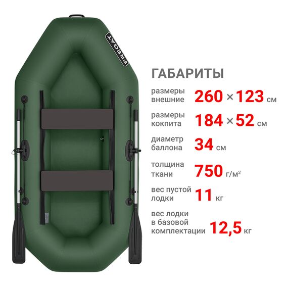 Лодка, весла, сумка-рюкзак, паспорт, ножная помпа (насос), ремкомплект. Упаковывается в удобную сумку-мешок и легко переносится одним человеком. + жилет Фрегат Лайт р-р 42-50 в подарок