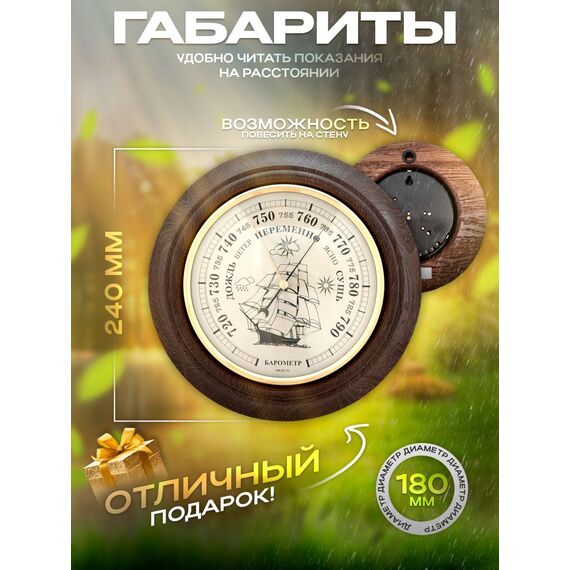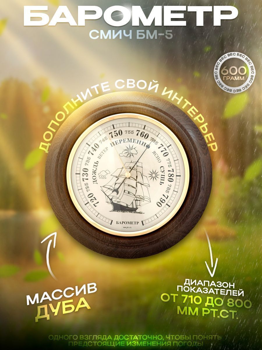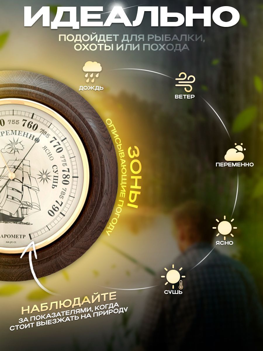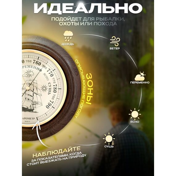 Механический барометр БМ-5 "Кораблик" станет идеальным подарком мужчине, который предпочитает проводить свободное время на природе: охоте, рыбалке или просто в походах.