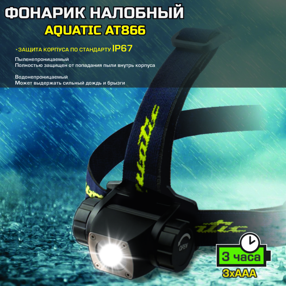 Водозащищенный алюминиевый фонарик Aquatic арт. AT866