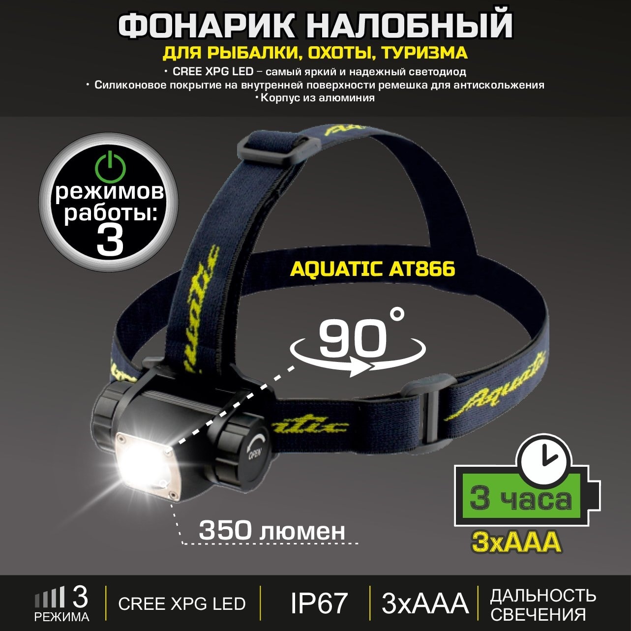 • Тип света: CREE XPG LED с алюминиевым отражателем