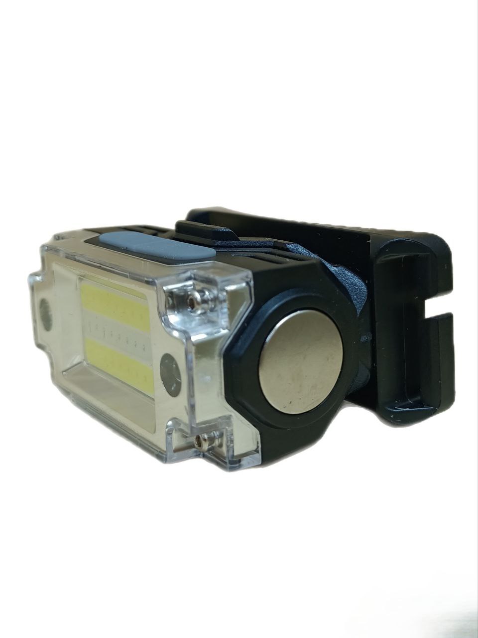 С другой стороны устройства имеется небольшой магнит, который позволит установить фонарик на металлической поверхности или временно зафиксировать отвинченные мелкие болтики, шайбы и т.п. при выполнении разного рода работ.