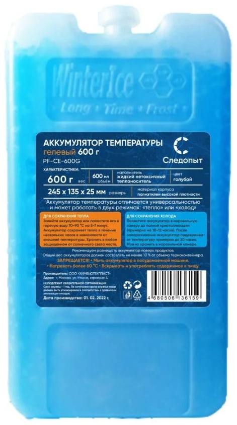Аккумулятор холода гелевый СЛЕДОПЫТ PF-CE-600G 600 гр, цв. голубой