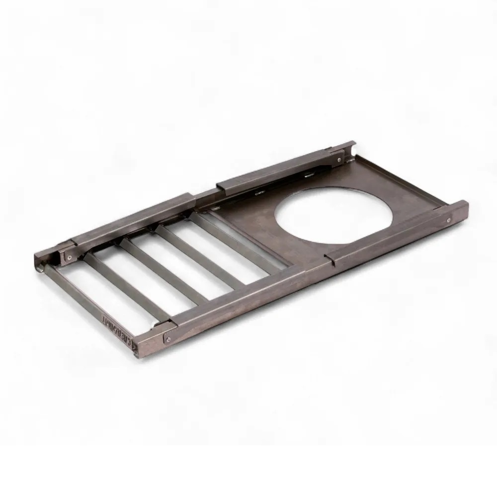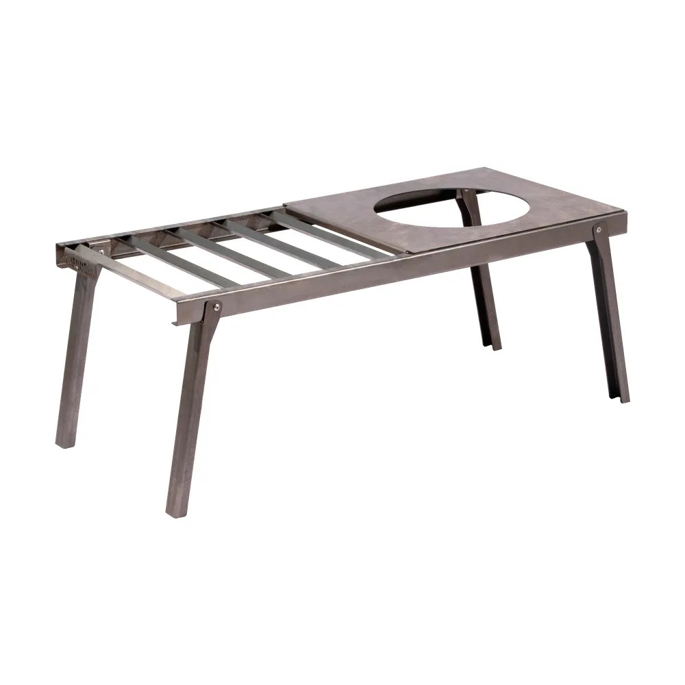 Решетка костровая «Следопыт» с подставкой под казан - переносная подставка со складными ножками для приготовления пищи на открытом огне при выездах на природу. Можно использовать как для установки посуды, так и для жарки мяса и прочих продуктов. Поверхность решетки способна выдержать до 40 кг. Можно установить одно полное ведро воды, чайник или котелок любого объема. Решетка оснащена круглым отверстием под казан. Срок службы неограничен. ХАРАКТЕРИСТИКИ: • Вес – 2,3 кг. • Размер – 660*300*260 мм. • Каркас – сталь 1 мм. • Максимальная нагрузка – 40 кг. • Диаметр отверстия – 200 мм. • Размер в сложенном виде – 660*300*32 мм.