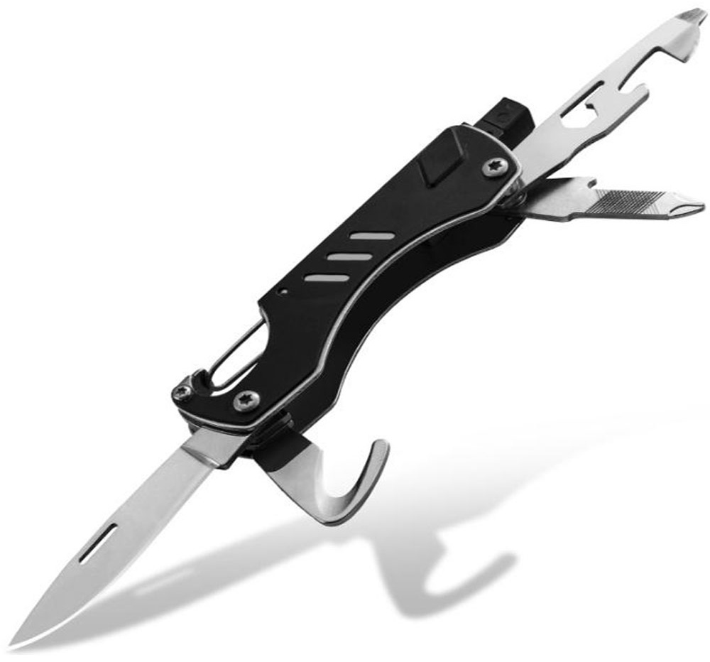 Многофункциональный складной нож из нержавеющей стали. Размеры инструмента 9.3×2.4×1.5 см.