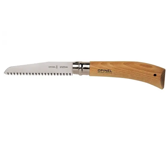 Складная пила Opinel. Длина клинка 12см. Углеродистая сталь. Фиксатор клинка Viroblock. Легкий и чистый рез при малом усилии. Работает при движении "на себя". Идеальна для обрезки веток диаметром до 8см. Рукоятка из буковой древесины. Бренд: Opinel Производство Франция