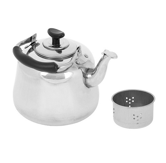 Чайник из нержавеющей стали с эргономичной ручкой для удобного использования. Удлиненная форма носика с откидной крышечкой, делает чайник практичным в использовании. На крышке чайника, предусмотрена широкая ручка из жаропрочного пластика.