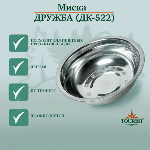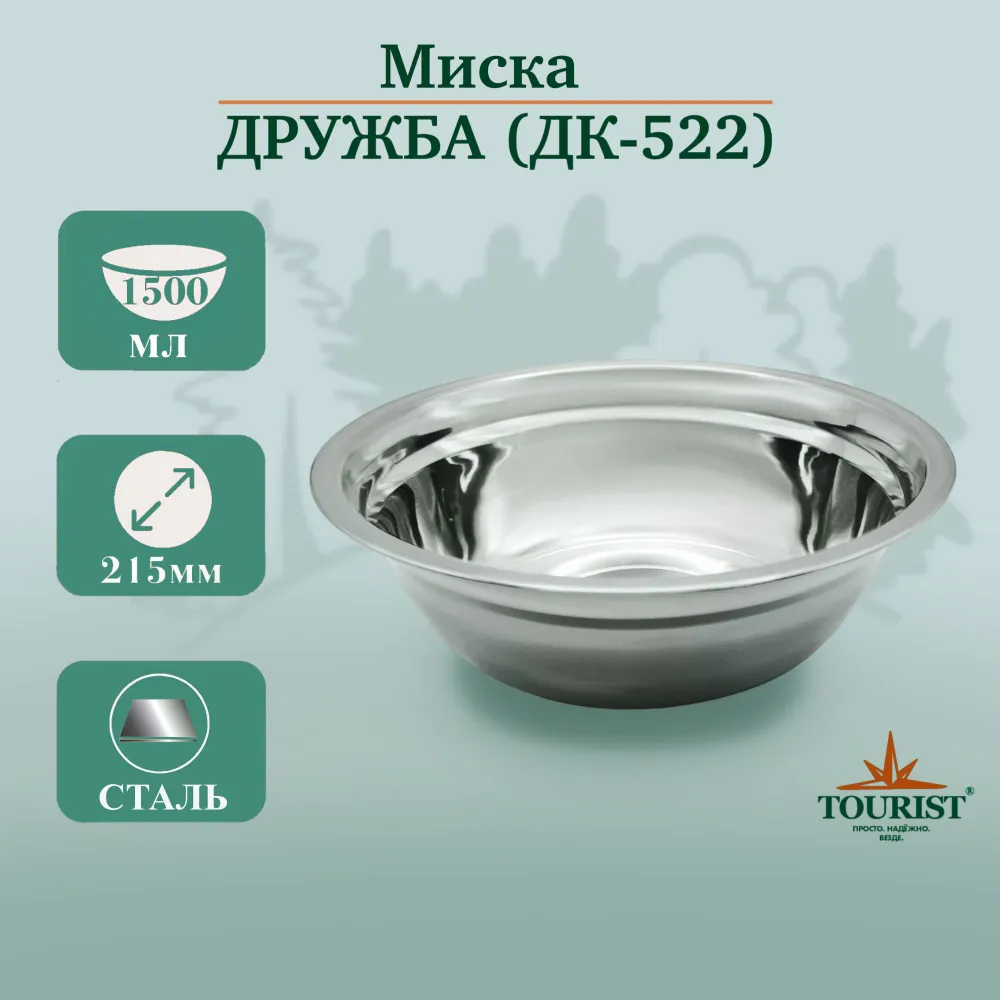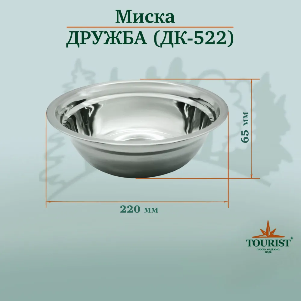 Миска Tourist ДК-522 Дружба, диаметр 22 см, 1500 мл, нерж. сталь