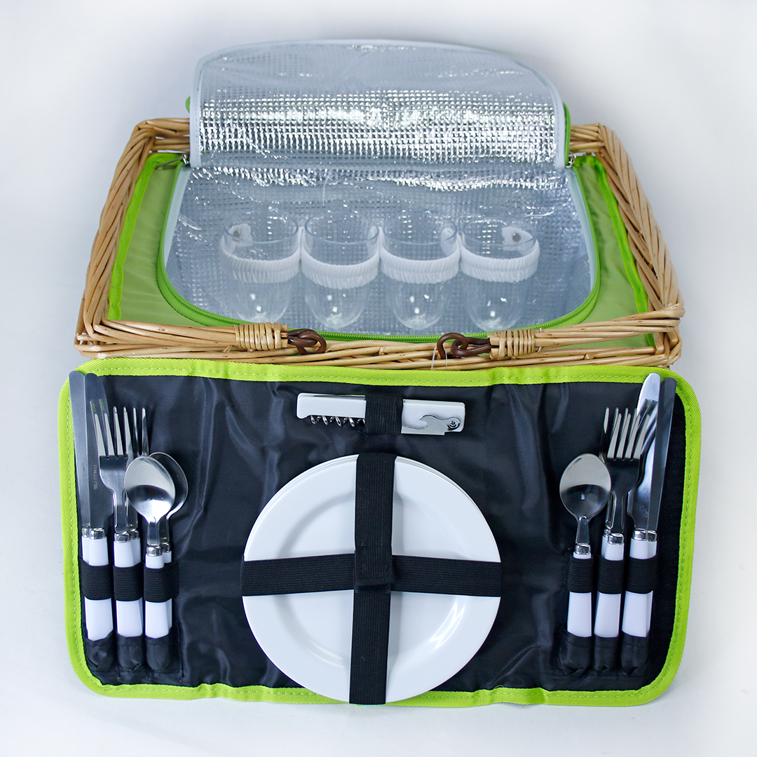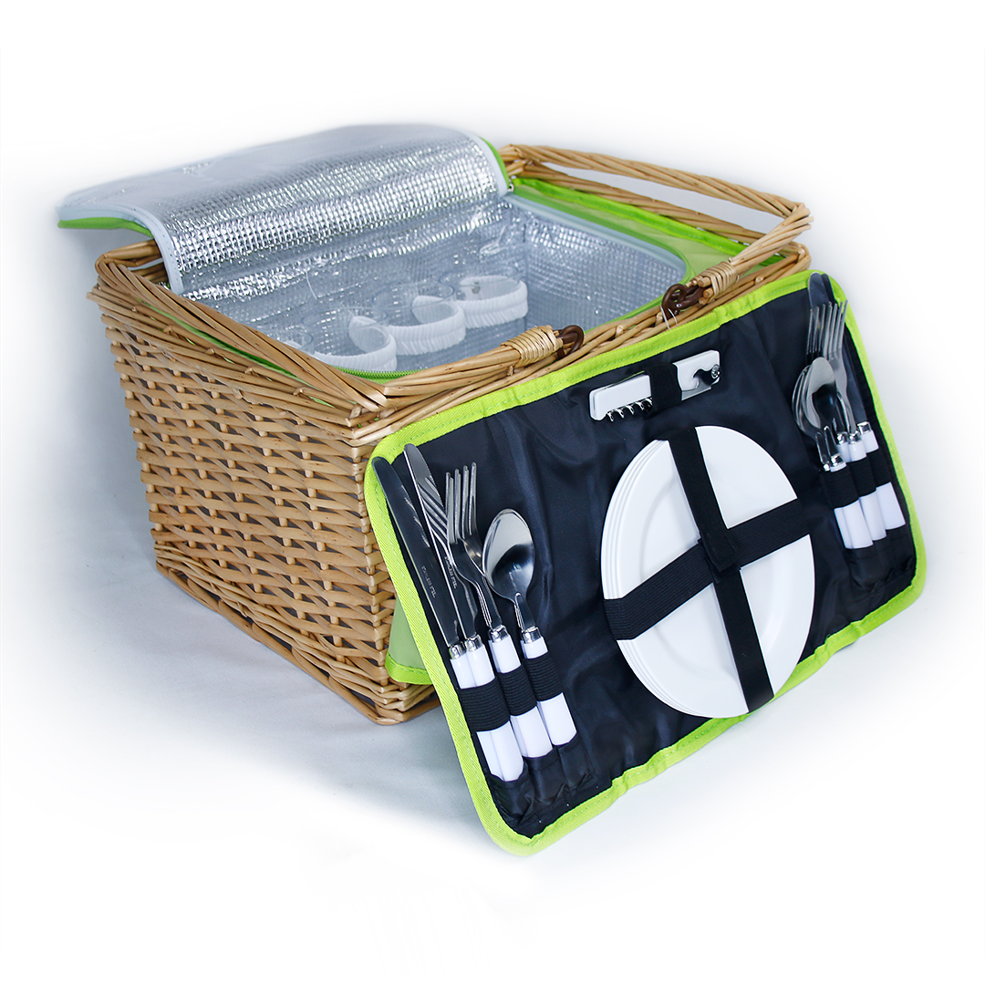Дополнительно: корзина на подкладе из полиэстера, откидная крышка, в комплект входит плед, сумка-холодильник, надёжная застёжка, ручка