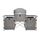 Каркас кухни KYODA XD-01 с боковыми столиками - 1 шт. Нижняя столешница центральной секции - 1 шт. Верхняя столешница центральной секции - 1 шт. Ветровая защита - 1 шт. Боковой шкаф - 2 шт. Центральный шкаф - 1 шт. Полки жесткости - 1 шт. Сумка для переноски - 1 шт. Инструкция - 1 шт. Упаковка - 1 шт.